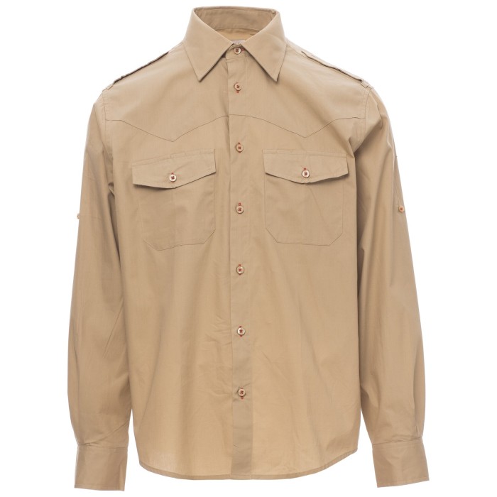 Koszula męska z gęstej czesanej bawełny, krój lekko dopasowany, karczek z przodu, zapięcie na guziki w kolorze materiału i z pętelkami w kontrastowym kolorze, naramienniki, dwie kieszenie na piersi z patką i dwie pętelki na długopis, specjalny pasek do wygodnego zapięcia na guzik podwiniętych rękawów.