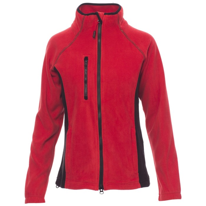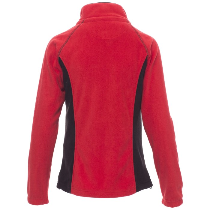 Polar damski dopasowany w dwóch odcieniach, z czarnym plastikowym zamkiem błyskawicznym 8 mm, rękawy raglanowe, regulowany sznurek w pasie, mankiety elastyczne, dwie kieszenie z ukrytym zamkiem błyskawicznym, jedna kieszeń na zamek błyskawiczny z przodu, dekolt wykończony kontrastową taśmą wzmacniającą, wzmocnione szwy.