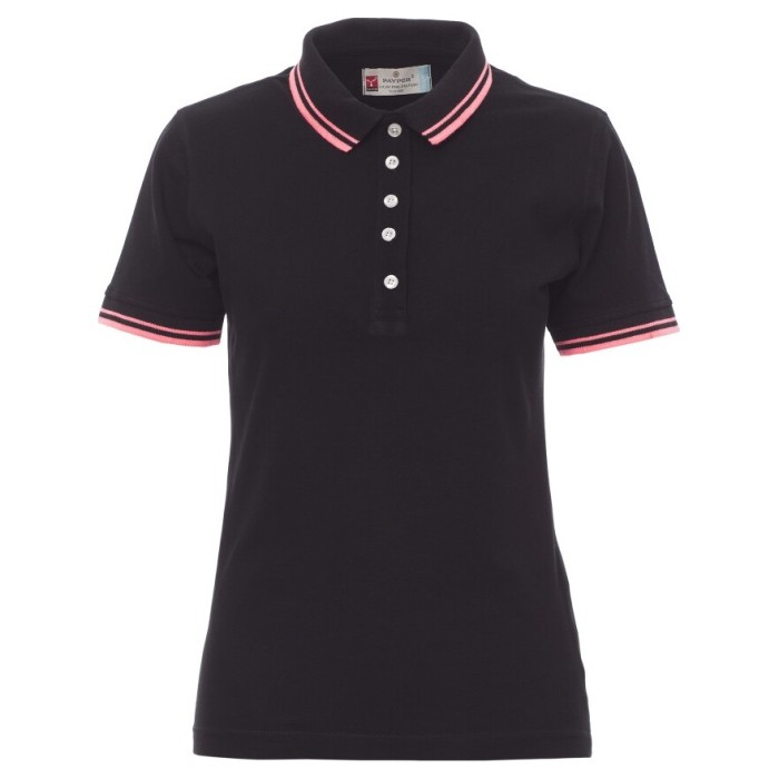 KOSZULKA POLO KRÓTKI RĘKAW SKIPPER LADY - CZARNY-FUKSJOWY NEON