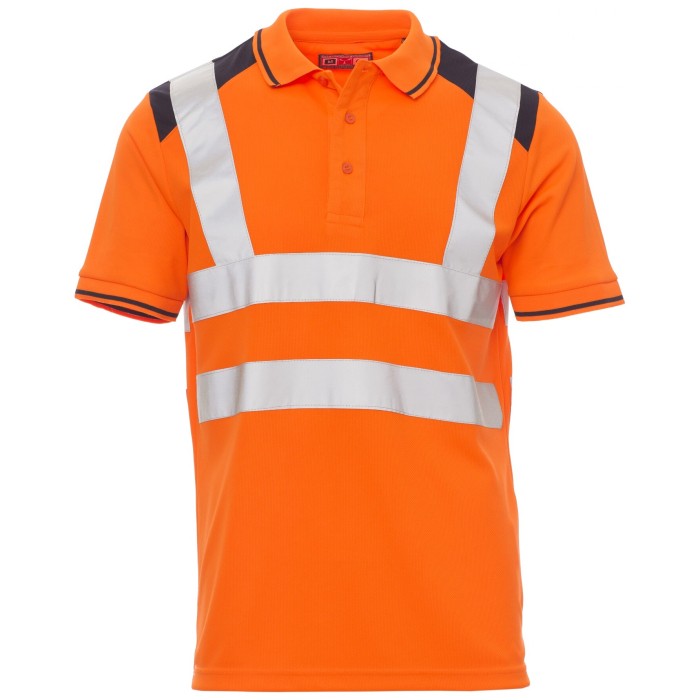 KOSZULKA POLO KRÓTKI RĘKAW GUARD+ - POMARAŃCZOWY FLUO-GRANATOWY