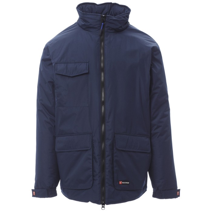 Kurtka męska o długości 3-4, plastikowy zamek błyskawiczny 8 mm z metalowym suwakiem, kaptur chowany w kołnierzu, elastyczne mankiety ze ściągaczami, dwie pojemne kieszenie z przodu z zapięciem LOCK SYSTEM, dwie kieszenie boczne, kieszonka na smartfon na klatce piersiowej.