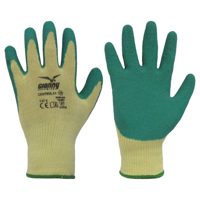 Rękawica z powłoką lateksową, dzianinowy mankiet, wewnętrzna strona dłoni z wykończeniem antypoślizgowym, powłoka bawełna-poliester 10g.