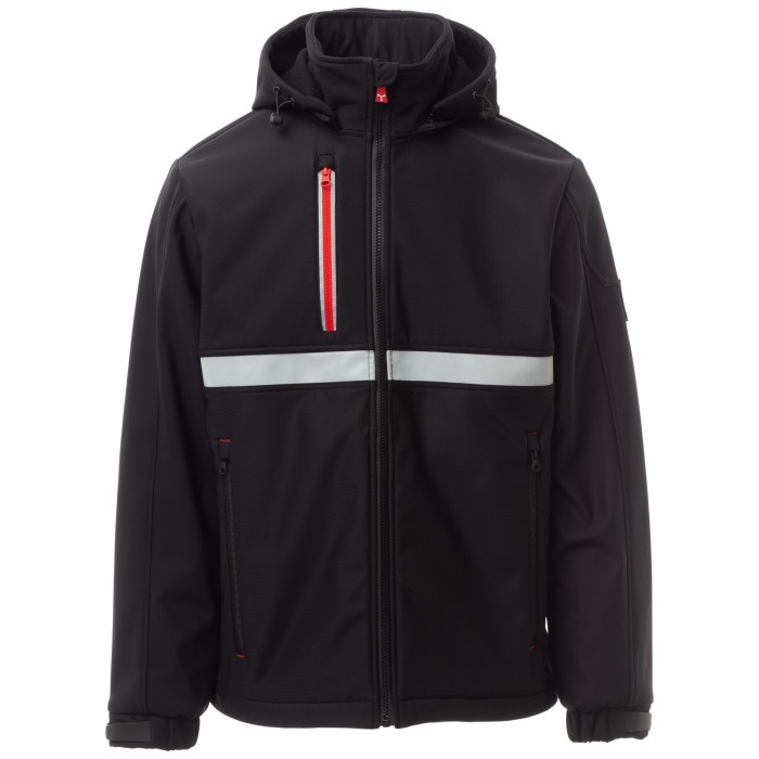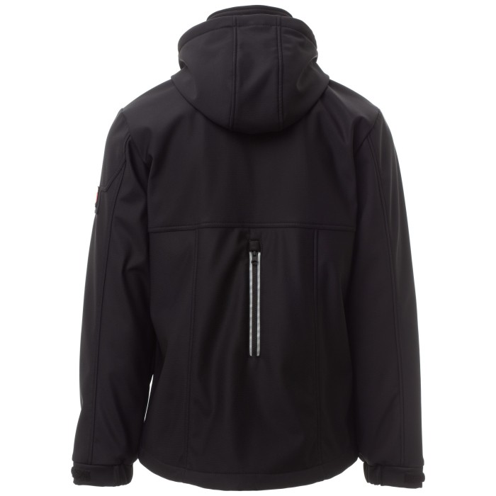 Męski dwukolorowy, 3-warstwowy soft-shell, kołnierz z polarowymi wstawkami, zamek błyskawiczny SBS z metalowym suwakiem „semi-auto lock” i spersonalizowanym ściągaczem.