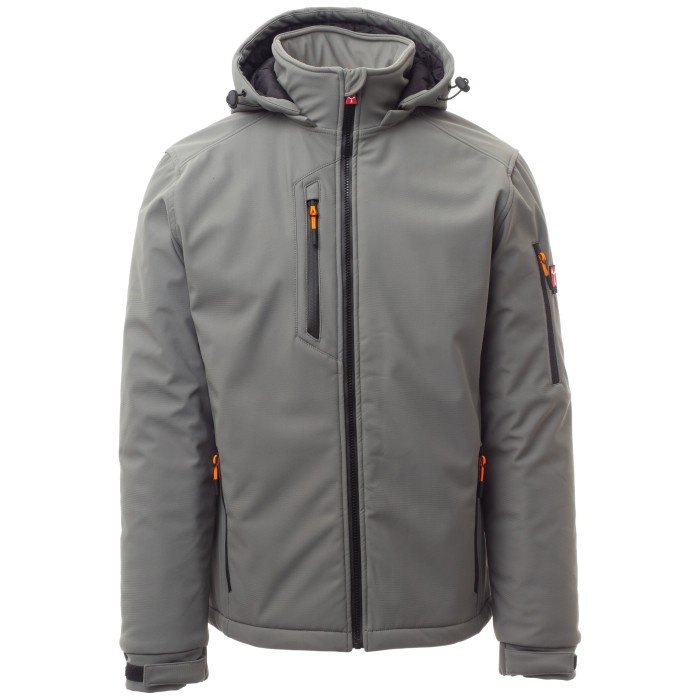 Męski 3-warstwowy soft-shell z grubym ociepleniem (160g-m2) i kołnierzem z polarowymi wstawkami, zapinany na zamek błyskawiczny SBS z metalowym suwakiem „semi-auto lock” i spersonalizowanym ściągaczem.