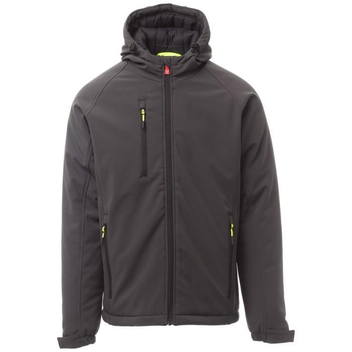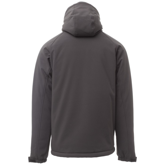 Męski 3-warstwowy soft-shell z grubym ociepleniem (160g-m2), zapinany na zamek błyskawiczny z metalowym suwakiem „semi-auto lock” i spersonalizowanym ściągaczem.