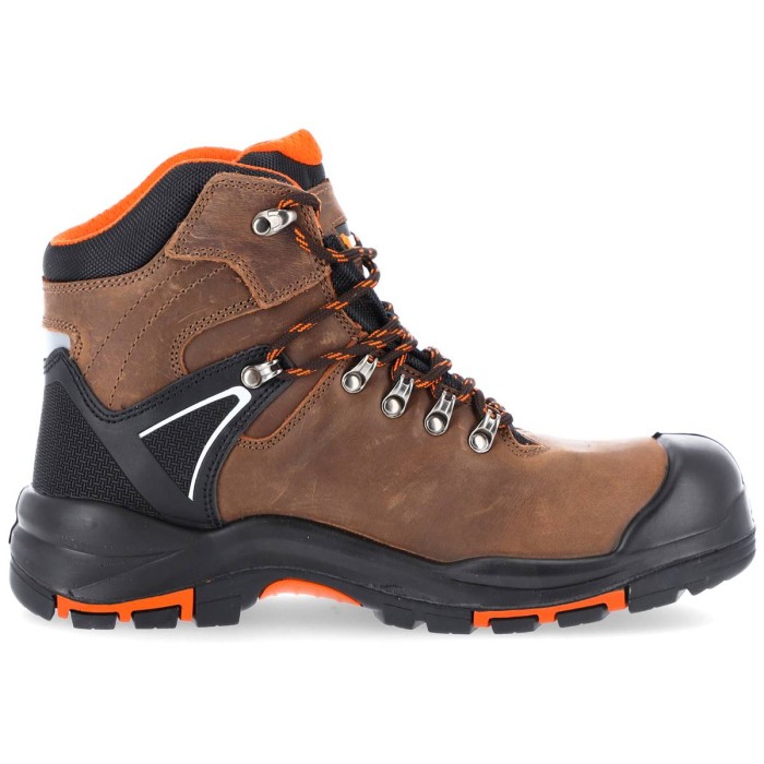 Trzewiki bezpieczne CENTAUR S3L SR HRO z kompozytowym podnoskiem ochronnym odpornym na uderzenia z energią 200 J i zgniecenia 15kN oraz kevlarową wkładką antyprzebiciową chroniącą stopę przed przekłuciem o sile 1100N. Cholewka obuwia wykonana jest z wysok...