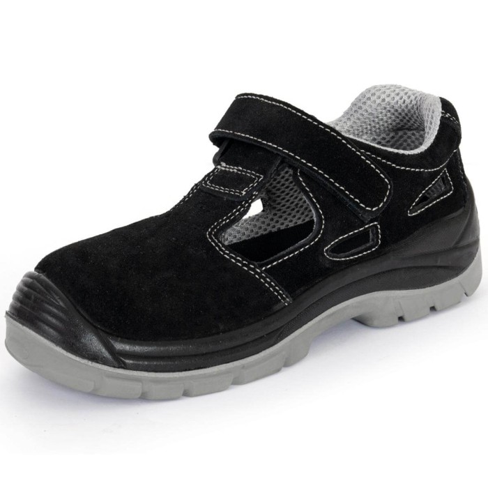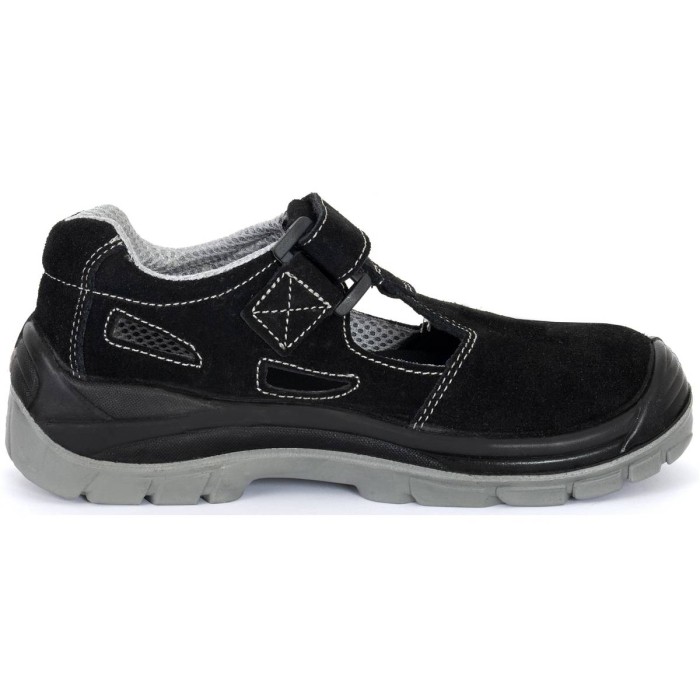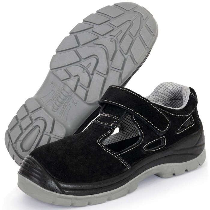 Sandały ochronne KAMARI O1 bez podnoska. Cholewka obuwia wykonana jest ze skóry welurowej, zapięcie na rzep. Podeszwa z dwuwarstwowego poliuretanu PU/PU, antyelektrostatyczna. Warstwa zewnętrzna twardsza, wewnętrzna bardziej miękka. Absorpcja energii w cz...