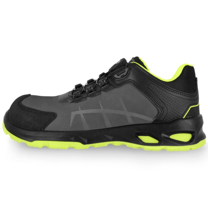Półbuty bezpieczne NEXO S3S z systemem sznurowania SPINPRO. Wykonane ze skóry nubukowej, ze stalowym podnoskiem ochronnym oraz kevlarową wkładką antyprzebiciową. Podeszwa z dwugęstościowego poliuretanu PU/PU, antyelektrostatyczna, antypoślizgowa i olejood...