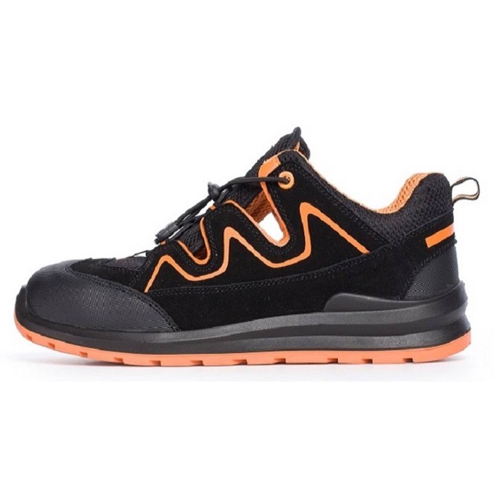 Sandały bezpieczne RACER z metalowym podnoskiem ochronnym. Cholewka obuwia wykonana jest ze skóry welurowej i przewiewnego materiału 3D Mesh. Przednia i tylna część dodatkowo wzmocnione materiałem ochronnym. Podeszwa z dwuwarstwowego poliuretanu PU/PU, an...