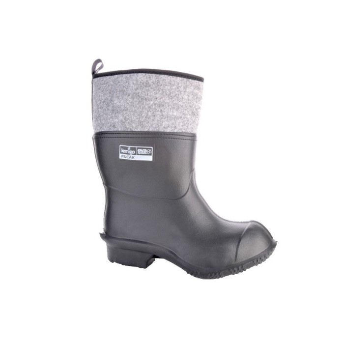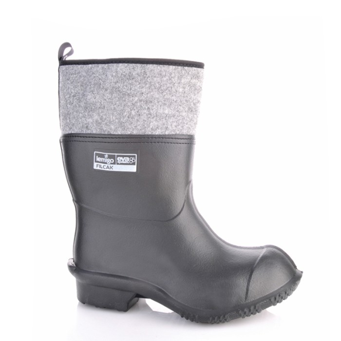 Kalosze męskie FILCAK EVA 804/ LEMIGO spełnia normy EN 20347 (środki ochrony indywidualnej - obuwie zawodowe)/ OB - środki ochrony indywidualnej - obuwie zawodowe/ SRC - odporność na poślizg na podłożu ceramicznym pokrytym roztworem laurylosiarczanu sodu (SLS) i na podłożu ze stali pokrytym glicerolem/ CI - izolacja od zimna do - 17°C, wewnątrz buta temperatura nie spada poniżej 13°C. Solidnie zaprojektowane, wytrzymałe kalosze męskie do użytku zawodowego i do prac w gospodarstwie domowym przez cały rok. Wykonane z tworzywa EVA i filcu. Para waży jedynie ok. 700 g. Obuwie jest lżejsze od produktów z gumy lub PVC. Główną zaletą obuwia z tego tworzywa jest twardość i elastyczność dzięki składnikom zawartym w mieszance chemicznej. EVA jest materiałem odpornym na zniekształcenia, rozrywanie i szkodliwe działanie promieni słonecznych. Swoje elastyczne właściwości zachowuje nawet w bardzo niskich temperaturach. Górna część wykonana z filcu, wykończona ozdobną lamówką ułatwia zakładanie buta a wysoki przegub ułatwia wygodne wkładanie i zdejmowanie obuwia. Wewnątrz ocieplina filcowa z wkładką filcową gwarantują doskonałą termoizolację. Kalosze stanowią dobrą ochronę przed zimnem, przesiąkaniem wody oraz wilgocią. Stabilna podeszwa o właściwościach antypoślizgowych odporna na przebicia. Te klasyczne filcaki łączą w sobie solidność z komfortem. Niezastąpione w budownictwie, wszelkich pracach gospodarczych, pracach porządkowych, terenowych w różnych warunkach atmosferycznych.
