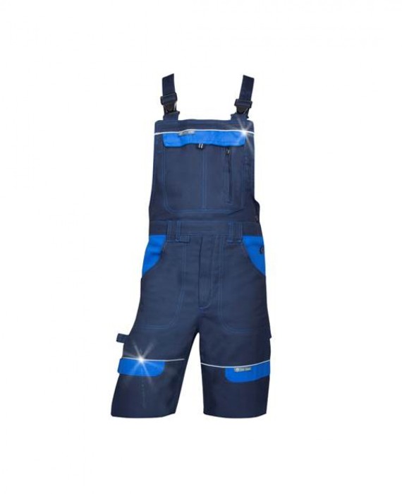 Ogrodniczki krótkie COOL TREND/ ARDON spełniają normy EN 13688 (odzież ochronna, wymagania ogólne). Bardzo komfortowe letnie ogrodniczki robocze w kolorze niebiesko-niebieskim, rozmiar 46-66. Wykonane ze 100% bawełny o splocie diagonalnym/ 260g/m2. Tkanina jest wytrzymała mechanicznie a jednocześnie miękka i wygodna w użyciu. Fason REGULAR FIT pozwala na pełną swobodę ruchów. Idealne dopasowanie zapewnia ściągacz w części tylnej, guziki po bokach i elastyczne szelki regulowane klamrą. Spodnie posiadają wielofunkcyjne kieszenie: dwie tylne kieszenie kryte patką, kieszeń piersiowa kryta patką z miejscem na nadruk logo i kieszeń na zamek, dwie pojemne kieszenie przelotowe i boczne kieszenie na narzędzia. Ogrodniczki wyposażono w wypustki odblaskowe, które zwiększają bezpieczeństwo i widoczność. Bardzo wygodne i jednocześnie wytrzymałe ogrodniczki robocze sprawdzą się przy każdej pracy. Dedykowane dla branży budowlanej, montażowo-instalacyjnej, do prac magazynowych, porządkowych, warsztatowych.