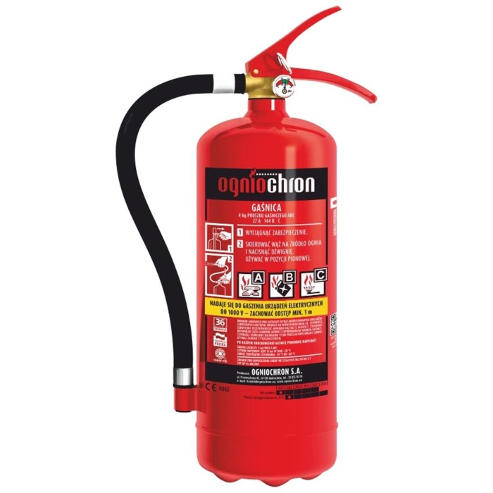 Gaśnica proszkowa 4 kg zaprojektowana dla zabezpieczenia obiektów użyteczności publicznej ,pomieszczeń biurowych, produkcyjnych, magazynów, garaży, a także domów i mieszkań prywatnych. Doskonale sprawdza się w transporcie samochodowym, kolejowym i wodnym....