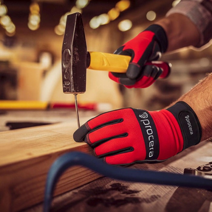 Rękawice robocze wykonane w części wierzchniej z elastycznego spandexu, a w części chwytnej ze skóry syntetycznej ze wzmocnieniami. Dodatkowe wzmocnienia na końcu kciuka, palcu wskazującym i środkowym oraz dodatkowe wzmocnienie w miejscu najbardziej naraż...
